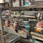 For open mouth bags or larger pouches, an empty bag is retrieved from a stack of bags by a robotic arm and placed or conveyed onto a staging tray. Then, the automatic bag placer’s arm swings down and picks up the bag and places it on the bag filling machine’s spout. After filling, a transfer arm moves the filled bag into a bag sewing or sealing system.