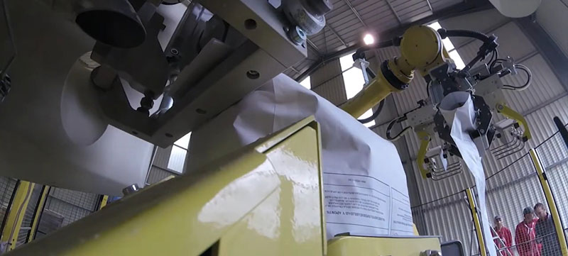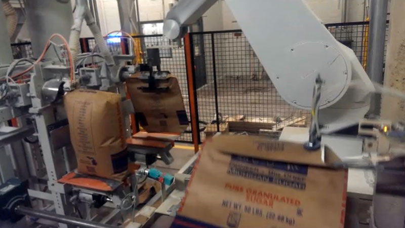 Watch a Video: NEW! All-in-One Robotic Valve Bag Placer AND Palletizer